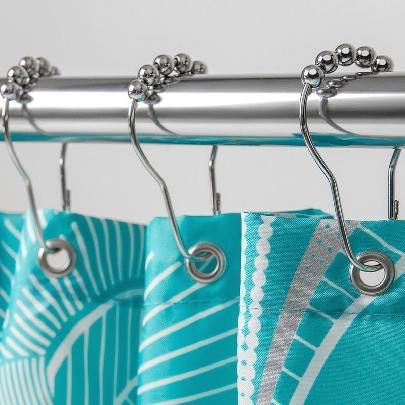 Кольца для шторы в ванную – эффектная деталь, придающая интерьеру завершенный вид.  На верхней части колец находятся 5 шариков, действующих по принципу подшипников и максимально облегчающих передвижение шторы вдоль карниза. Крепления выполнены из металла, тонированного в серебристый цвет, и станут стильным дополнением к занавескам любой расцветки.
